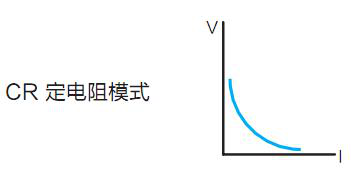 定电阻操作模式(CR):在定电阻模式下,电子负载被等效为一个恒定的电阻,电子负载会随着输入电压的改变来线性改变电流。