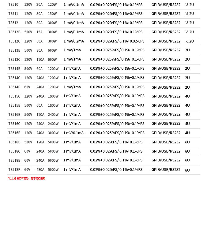 型号规格表